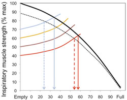 including the fact that the inspiratory muscles become much weaker as we inhale (see figure).